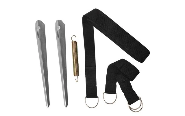 Grâce à sa longueur (11 m + 1,5 m), cette bande de maintien robuste est parfaitement adaptée aux stores longs. Elle est tendue sur toute la largeur du store et empêche ainsi la toile de s’envoler. Avec collier de serrage, 2 piquets en acier de 38 cm, 1 ressort en acier de 15 cm.