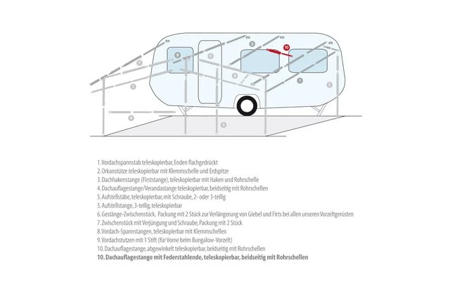 Barres de support de toit avec extrémité en acier à ressort, télescopiques, avec colliers de serrage des deux côtés.