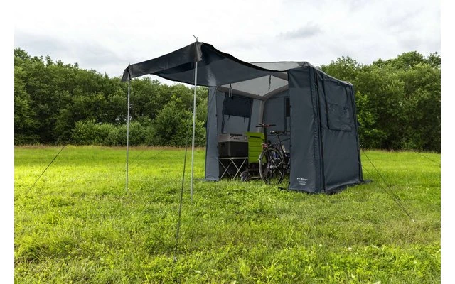 Tente universelle multifonctionnelle haut de gamme avec technologie à air et hauteur debout confortable. La Positano-L 4 Season offre beaucoup de place pour ranger les vélos, les ustensiles de camping, les jouets, les outils de jardinage et bien d’autres choses encore. Grâce à l’armature pneumatique, il se monte rapidement et facilement. Le matériau PVC résistant aux intempéries, y compris le revêtement anti-UV, permet une utilisation toute l’année. Trois fenêtres (enroulables à moitié/entièrement) avec gaze anti-moustiques assurent une ventilation optimale. Deux entrées (enroulables) permettent un accès facile. Pour une protection optimale, la tente universelle peut être entièrement fermée de manière opaque.