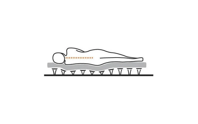 Les Ă©lĂ©ments Ă ressort se transforment en un support confortable (sommier Ă lattes). Le système de couchage confort peut ĂŞtre clipsĂ© de manière Ă©troite, moyenne ou large en choisissant l’Ă©cartement des trous. Il est donc possible de varier le degrĂ© de duretĂ© en consĂ©quence. Le corps est positionnĂ© correctement sur le plan orthopĂ©dique et bĂ©nĂ©ficie d’un soutien individuel qui soulage la pression. Cela permet d’Ă©viter les tensions et les contraintes unilatĂ©rales. Des cellules ouvertes et permĂ©ables Ă l’air assurent une aĂ©ration parfaite et un climat de sommeil optimal.
