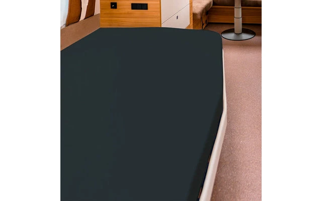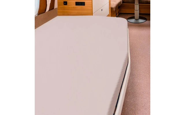 Drap-housse très élastique, spécialement adapté aux camping-cars, caravanes et bateaux équipés d’un lit à la française, c’est-à-dire d’un matelas incliné ou arrondi sur un côté.