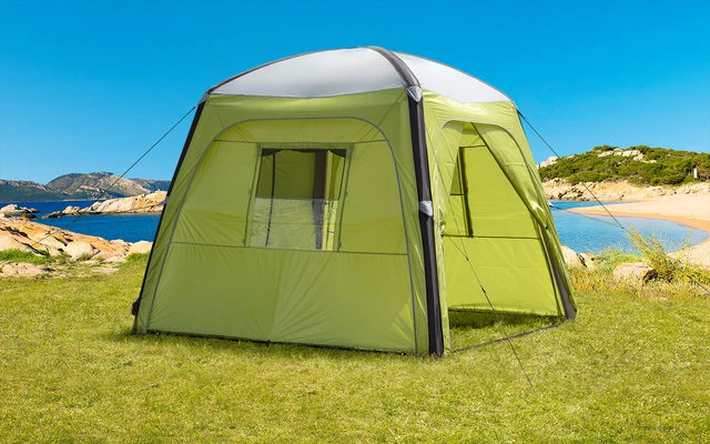 Les parois latérales assorties du pavillon gonflable Avio-L offrent une protection contre les intempéries. Composé de quatre parois latérales : 2 parties avec fenêtres, qui peuvent être fermées de manière opaque de l’intérieur et 2 parties avec portes, qui peuvent être fermées avec une fermeture éclair. Les fenêtres peuvent être fermées à moitié avec du papier d’aluminium et à moitié avec de la gaze anti-moustique.