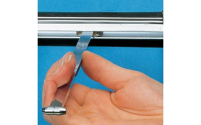 Utilisez le mandrin keder pour remettre en forme les rails keder pliés. Insérez le mandrin de l’épaisseur appropriée (épaisseur différente de 7 et 9 mm à chaque extrémité) et frappez à travers le rail keder avec des coups légers à l’aide d’un marteau de camping.